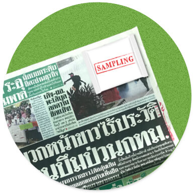 - ส่ง Sampling 10 วัน ก่อนหนังสือพิมพ์วางแผง ขนาด Sampling ไม่เกิน 10x15 cm. น้ำหนักไม่เกิน 10 g. ความหนาไม่เกิน 5 mm. หากเป็นสินค้าของเหลวควรมีหีบห่อหุ้มสินค้า เพื่อป้องกันความเสียหายขณะขนส่ง